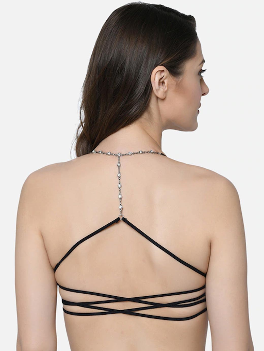 Black Lightly Padded Underwired Styled Back Push Up Bra