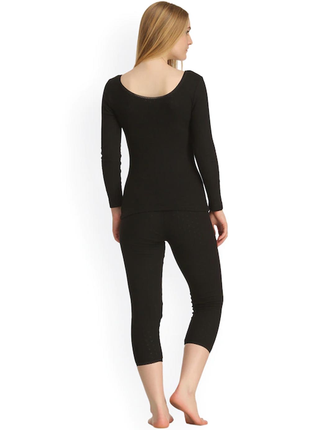 This black thermal set consists of a top and a pair of leggings