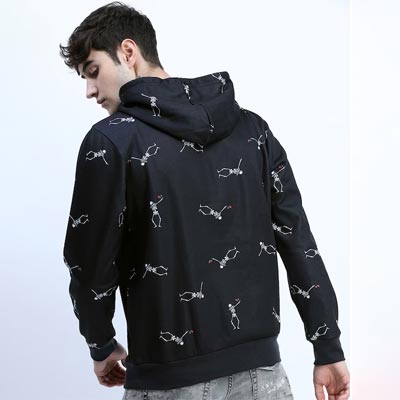 Men Black Printed Hooded Sweatshirt