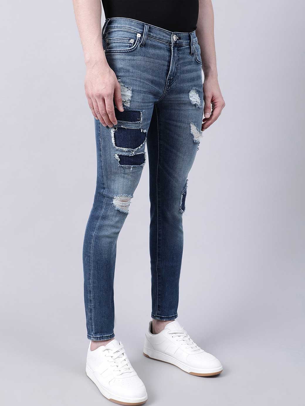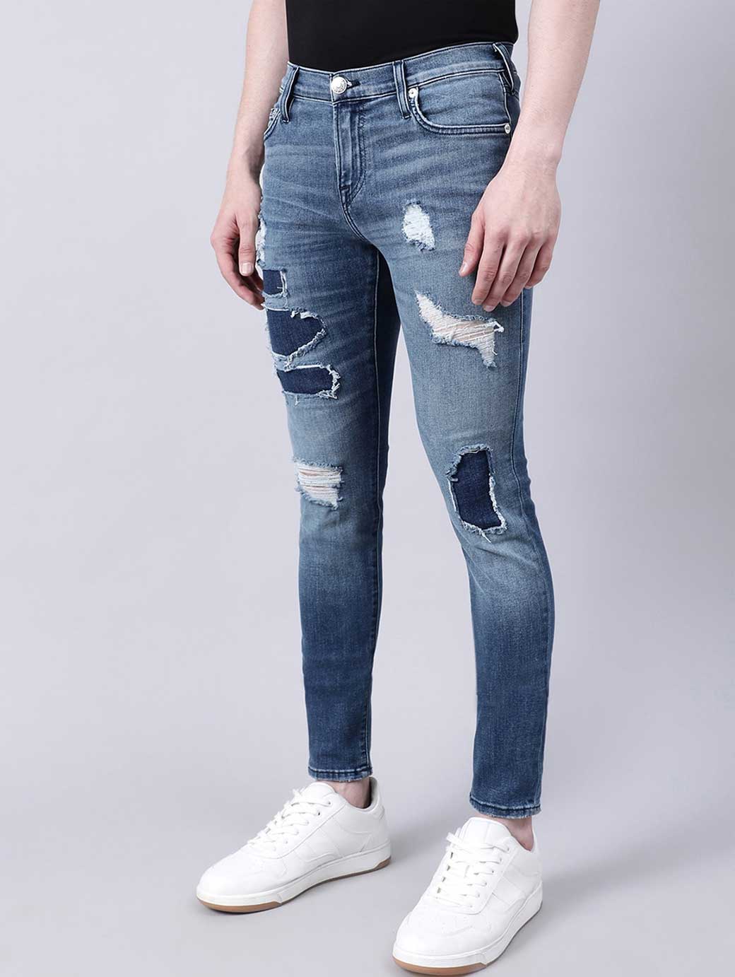 Men Blue Skinny Fit Highly Distressed Heavy Fade Jeans
