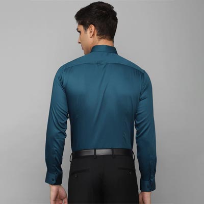 Blue solid opaque Formal shirt ,has a spread collar, button placket, 1 pocket, long regular sleeves, curved hem