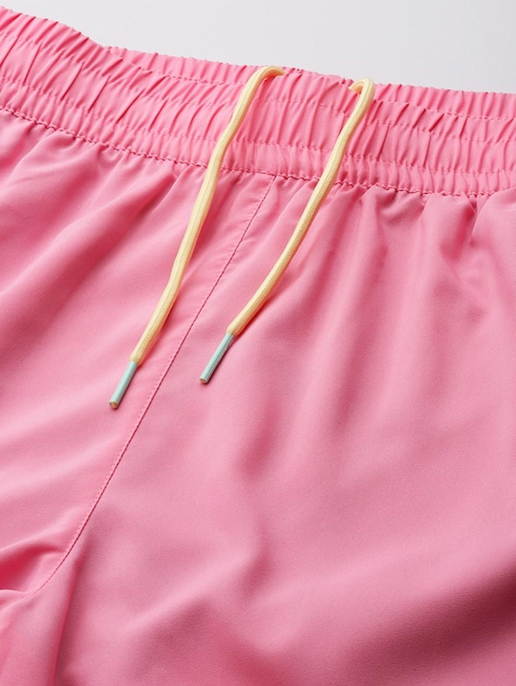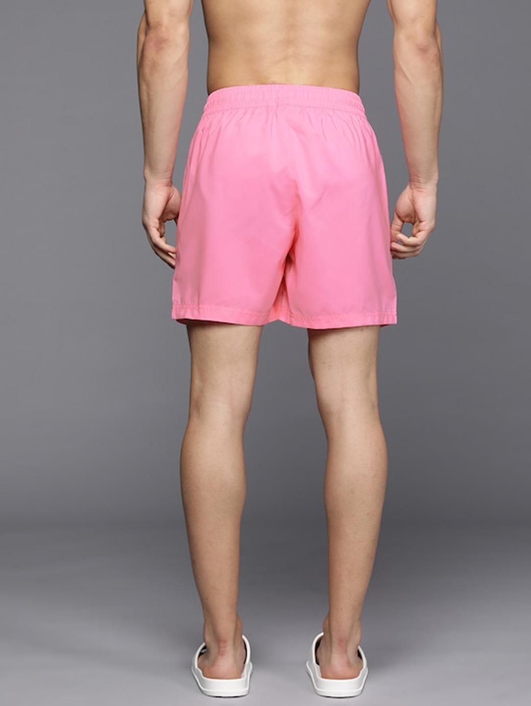 Pink Solid Swim Shorts Elastic waist Drawstring closure 2 Side pockets.