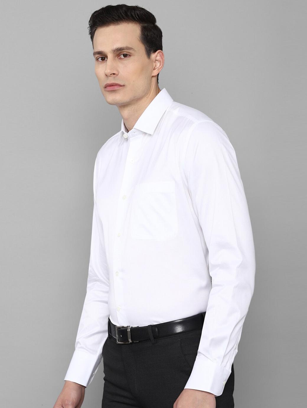 White solid opaque Formal shirt ,has a spread collar, button placket, na pocket, long regular sleeves, straight hem