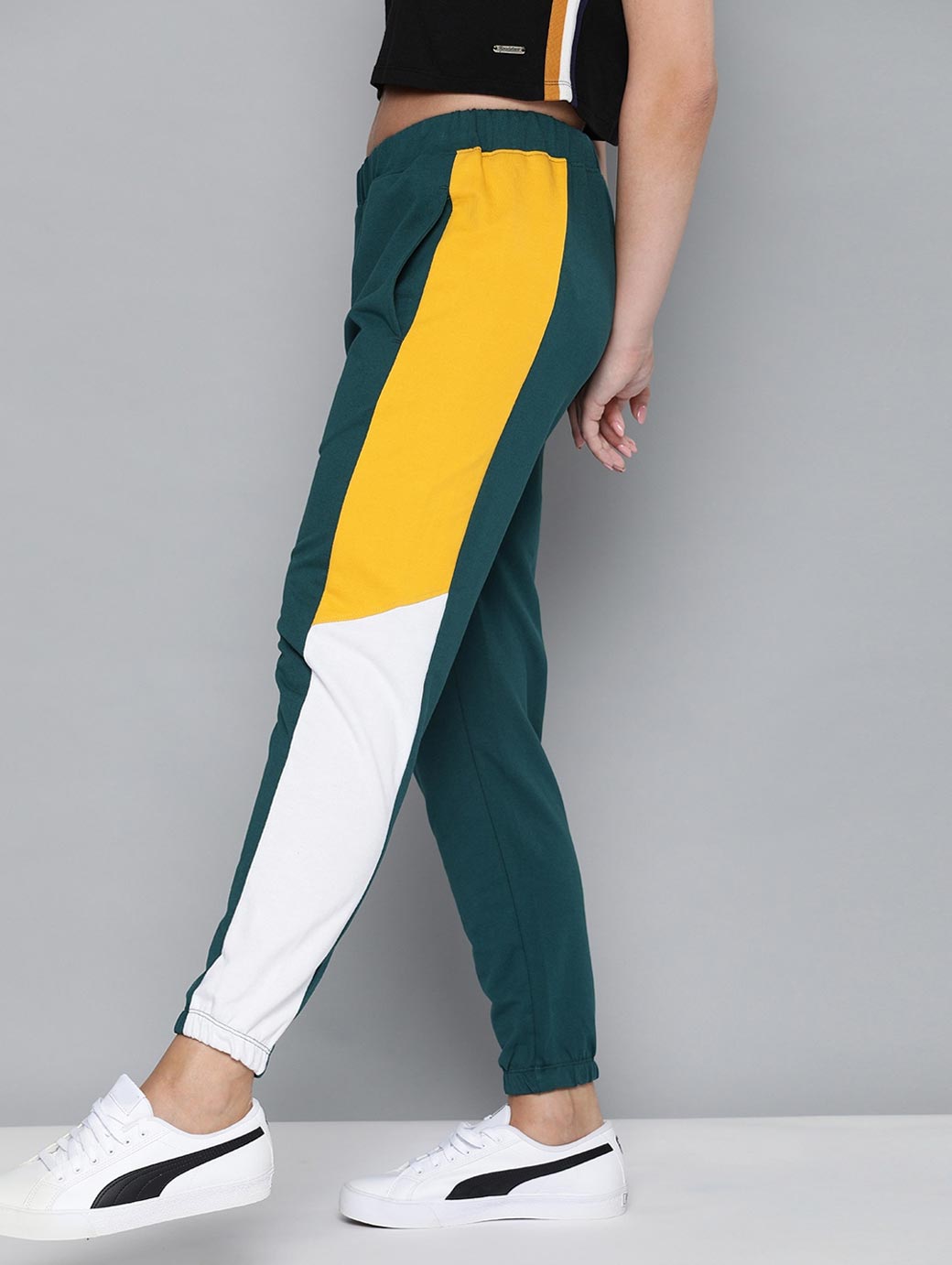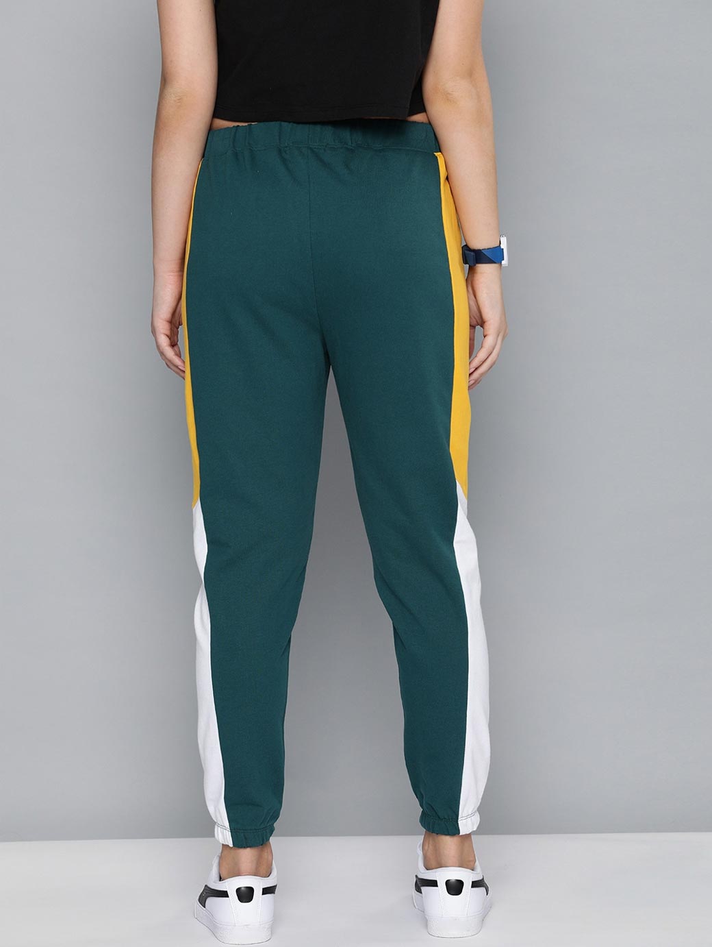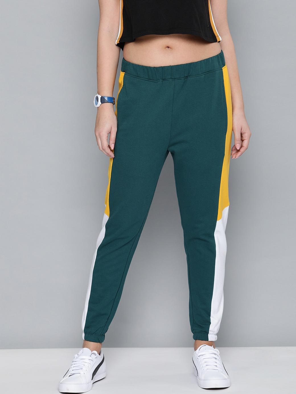 Women Green Solid Cropped Joggers With Side Panelling